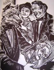 "I strained my eyes and at last, in spite of the mud and puddles, went across, and there over the door I saw a stain showing up faintly on the grey-green of the wall. Why (are the) letters playing on this old wall in the darkest alley of the Old Town on a wet night with not a soul passing by, and why were they so fleeting, so fitful and illegible? But wait, at last I suceeded in catching several words on end. They were: